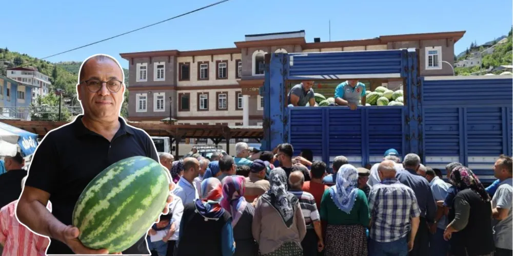 Adana'nın Saimbeyli ilçesinde Belediye Başkanı Mahmut Dal, Adana merkezde gerçekleştirdiği ziyaret sırasında tarlada kalan karpuzları görünce üreticiye destek amacıyla harekete geçti. Karpuzlardan 20 ton alarak ilçeye getiren Başkan Dal, karpuzları vatandaşlara ücretsiz olarak dağıttı.