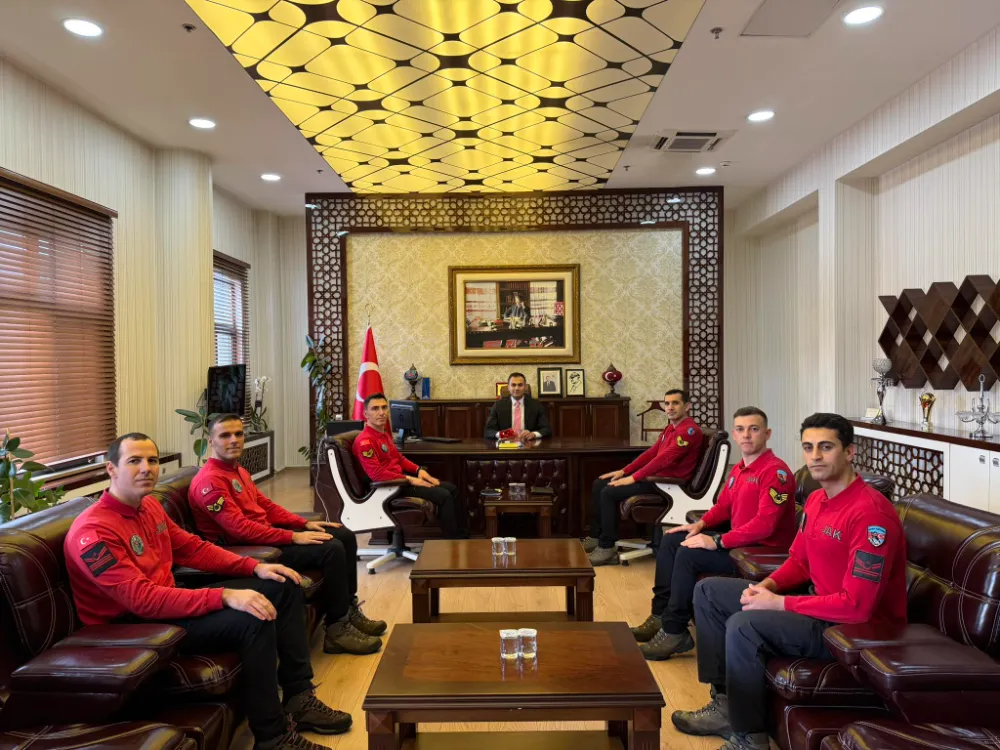 Çamardı Kaymakamı Muhammet Furkan Bektaş, Jandarma Arama Kurtarma Timi Komutanı ve personelini makamında ağırlayarak nazik ziyaretlerinden dolayı teşekkür etti; ekip çalışmalar hakkında bilgi verdi.