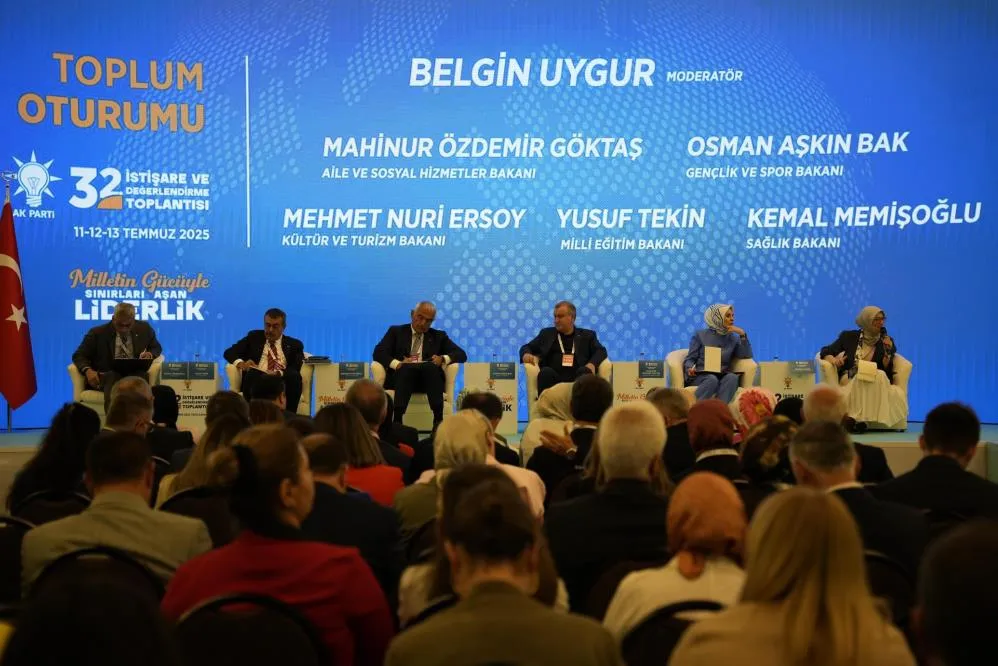 Kızılcahamam'da 32. AK Parti İstişare ve Değerlendirme Toplantısı kapsamında basına kapalı gerçekleştirilen oturumlarda Cumhurbaşkanlığı Kabinesi üyeleri, toplum, güvenlik, kalkınma ve ekonomi alanlarında gelen soruları cevapladı ve değerlendirmelerde bulundu. AK Parti Genel Başkan Yardımcılarının moderatörlük görevini üstlendiği oturumlarda, vatandaşları doğrudan ilgilendiren meseleler tüm boyutlarıyla ele alındı. Dışişleri Bakanı Hakan Fidan, İçişleri Bakanı Ali Yerlikaya, Milli Savunma Bakanı Yaşar Güler ve Adalet Bakanı Yılmaz Tunç 'Güvenlik' başlıklı oturumda soruları yanıtlarken, 'Toplum' başlıklı oturumda ise Aile ve Sosyal Hizmetler Bakanı Mahinur Özdemir Göktaş, Sağlık Bakanı Kemal Memişoğlu, Gençlik ve Spor Bakanı Osman Aşkın Bak ile Kültür ve Turizm Bakanı Mehmet Nuri Ersoy yer aldı. 'Kalkınma' alanındaki oturumlarda Enerji ve Tabii Kaynaklar Bakanı Alparslan Bayraktar, Çevre, Şehircilik ve İklim Değişikliği Bakanı Murat Kurum, Tarım ve Orman Bakanı İbrahim Yumaklı ile Ulaştırma ve Altyapı Bakanı Abdulkadir Uraloğlu soruları yanıtladı. 'Ekonomi' oturumunda ise Hazine ve Maliye Bakanı Mehmet Şimşek, Ticaret Bakanı Ömer Bolat, Çalışma ve Sosyal Güvenlik Bakanı Vedat Işıkhan ve Sanayi ve Teknoloji Bakanı Mehmet Fatih Kacır hazır bulundu.