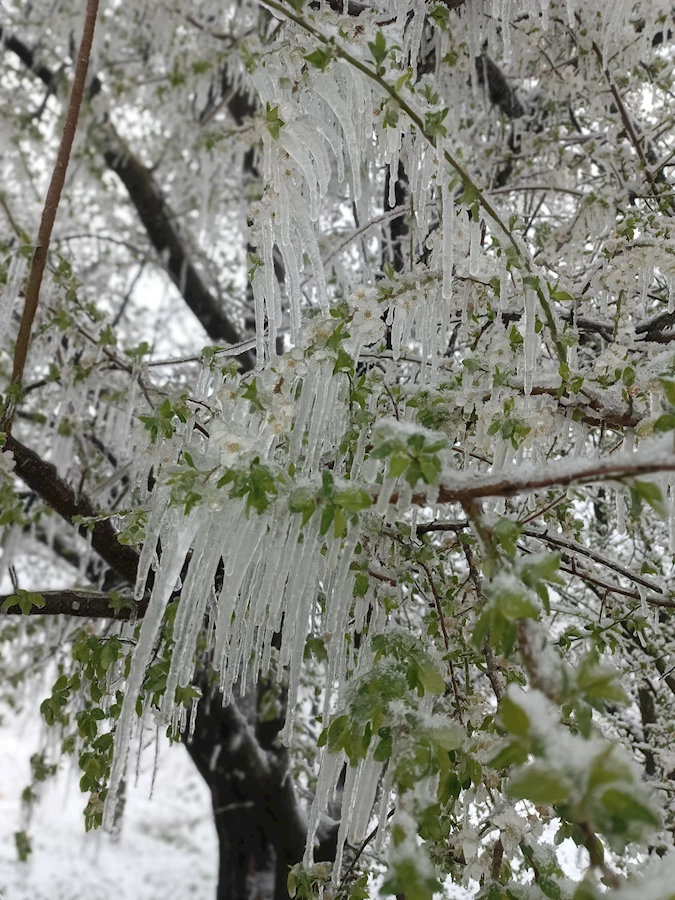 Çiğdemlik köyünde yaşayan 45 yaşındaki İhsan İnce, gece hava sıcaklığının sıfırın altında 5 dereceyi bulması üzerine bir tanesinin bile dayanamayacağını düşündüğü çiçek açan meyve ağaçlarının üstüne yer altından 4 derecedeki suyu yağmurlama yöntemiyle püskürttü. Dallardaki meyve çiçekleri ile yeni çıkan yapraklar buzla kaplandı. Böylece ayva ve cennet hurması ağaçlarının olumsuz etkilenmemesi sağlandı.