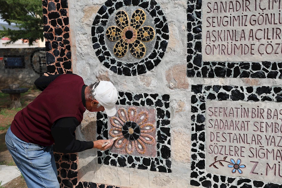 Derinkuyu ilçesine bağlı Yazıhöyük beldesinde ikamet eden 74 yaşındaki Rafet Topraktepe 3 yıl önce kaybettiği eşine olan aşkını şiir dizeleriyle taşlara işledi. İşlediği taşları evinin bahçesine yerleştirerek eşi adına da bir park yaptı.