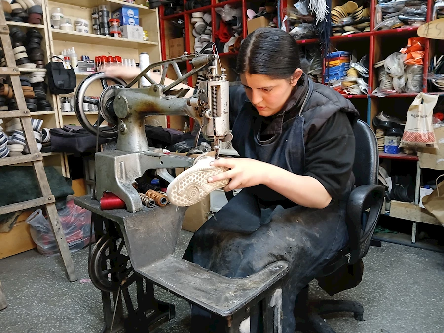 Esra Dinç, yaklaşık altı ay önce başladığı kundura tamirciliğinde kısa sürede el becerisini geliştirdi. Dikiş makinesinden çekiç seslerine kadar tamirhanede her detayla birebir ilgilenen genç tamirci, iş yerindeki titiz çalışması ve özgüveniyle hem müşterilerinin hem de çevresindekilerin takdirini kazanıyor.