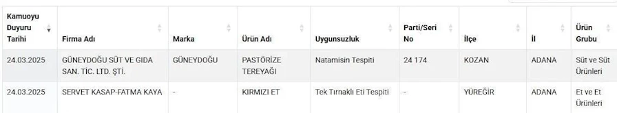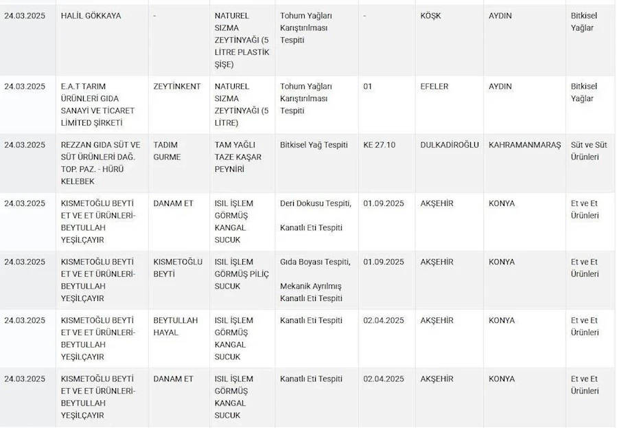 Vatandaşların sağlıklı gıdaya erişmesi için Tarım ve Orman Bakanlığı yaptığı denetimler sonrası uygunsuz olan ürünleri ifşa etmeye devam ediyor.