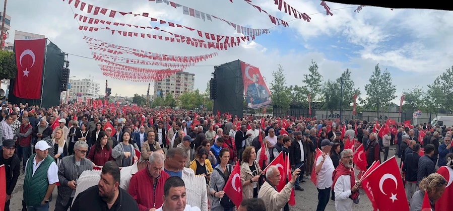 CHP'nin Cumhurbaşkanı adayı Ekrem İmamoğlu'nun serbest bırakılması ve erken seçim talebiyle düzenlenen "Millet İradesine Sahip Çıkıyor" mitinglerinin üçüncüsü Mersin'de gerçekleşiyor. Yenişehir Meydanı'nda düzenlenen ve CHP Genel Başkanı Özgür Özel'in de katıldığı miting, adeta bir halk seline dönüştü.