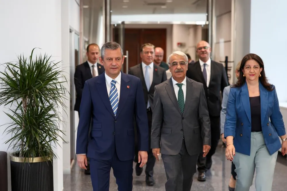 Cumhuriyet Halk Partisi Genel Başkanı Özgür Özel, Pervin Buldan, Mithat Sancar ve Faik Özgür Erol'dan oluşan Halkların Eşitlik ve Demokrasi Partisi heyetini CHP Genel Merkezi'ndeki makamında kabul etti. CHP lideri Özel'e CHP Genel Sekreteri Selin Sayek Böke ve CHP TBMM Grup Başkanvekili Murat Emir eşlik etti.