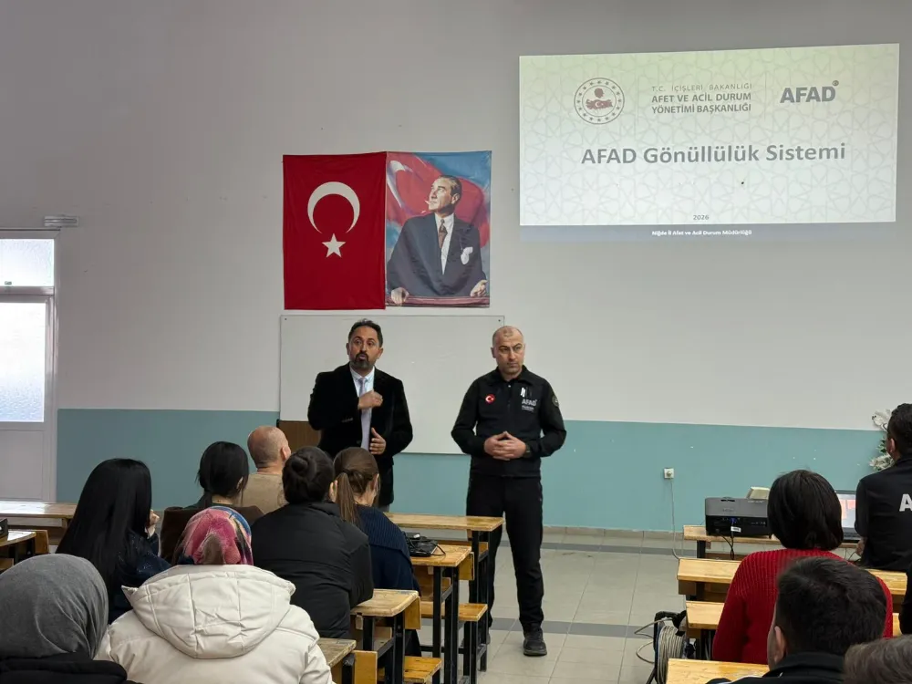 1–7 Mart Deprem Haftası kapsamında Niğde’de önemli bir farkındalık eğitimi gerçekleştirildi. AFAD Niğde İl Müdürlüğü ve Niğde Ömer Halisdemir Üniversitesi Ulukışla Meslek Yüksekokulu iş birliğiyle düzenlenen “AFAD Gönüllülük Farkındalık ve AFAD Gönüllülük Sistemi Eğitimi”, Ulukışla Meslek Yüksekokulu Müdürü Mustafa Boğa koordinatörlüğünde gerçekleştirildi.