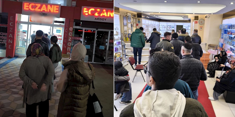 İlaç var nöbetçi eczane sayısı az ne zaman gitsek aynı kuyruğu bekliyoruz. Hastane bölgesinde en az 2 eczane olması lazım her akşam nöbetçi eczanelerde bu kuyruk oluyor." diyerek dert yandılar.