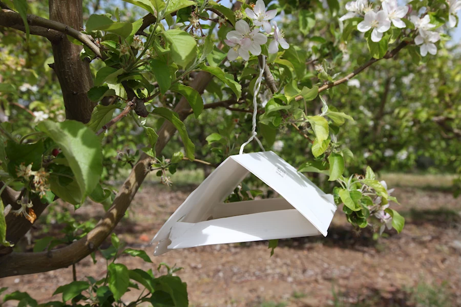 Çanakkale İl Tarım ve Orman Müdürlüğü, "Biyolojik-Biyoteknik Mücadelenin Yaygınlaştırılması" projesi kapsamında elma iç kurduna karşı feromon çubukları uygulamasını genişletiyor. Son uygulama, Aşağıokçular'da elma bahçesinde gerçekleştirildi.