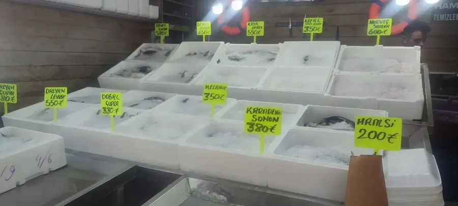 Niğde’de güncel balık fiyatları: Deniz Çupra 580 TL, Deniz Levrek 650 TL, Kaya Levrek 550 TL, Kefal 350 TL, Norveç Somon 600 TL, Dalyan Çupra 580 TL, Dalyan Levrek 550 TL, Doğal Çupra 330 TL, Melanur 350 TL, Karadeniz Somon 380 TL, Hamsi ise 200 TL’den satışta.