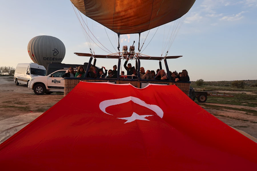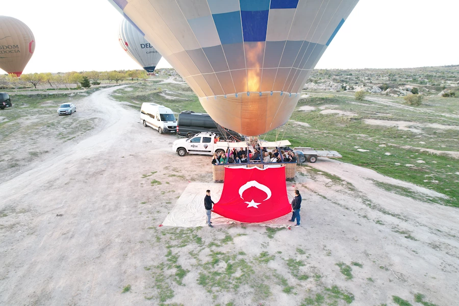 UNESCO Dünya Kültürel ve Doğal Miras Listesi'ndeki Kapadokya'da turistlerin Kapadokya'yı kuşbakışı izlemesine imkân sunan sıcak hava balonları, gün doğumundan önce tur için hazırlandı. Türkiye Büyük Millet Meclisi'nin kuruluşunun 105. yıl dönümü ve 23 Nisan Ulusal Egemenlik ve Çocuk Bayramı için görevlilerce sepetlerine Türk Bayrakları ve Atatürk posterleri asılan balonlar, güneşin yüzünü göstermesiyle peş peşe gökyüzüne havalandı.