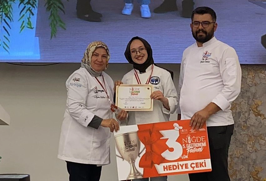 Üniversitelerarası Bireysel Tatlı Tabağı Kategorisi'nde yarışan KMÜ öğrencisi Zeynep Aykurt ise Füzyon Mutfak Uygulamaları kapsamında hazırladığı tatlı tabağıyla 3. olarak bronz madalya almaya hak kazandı.