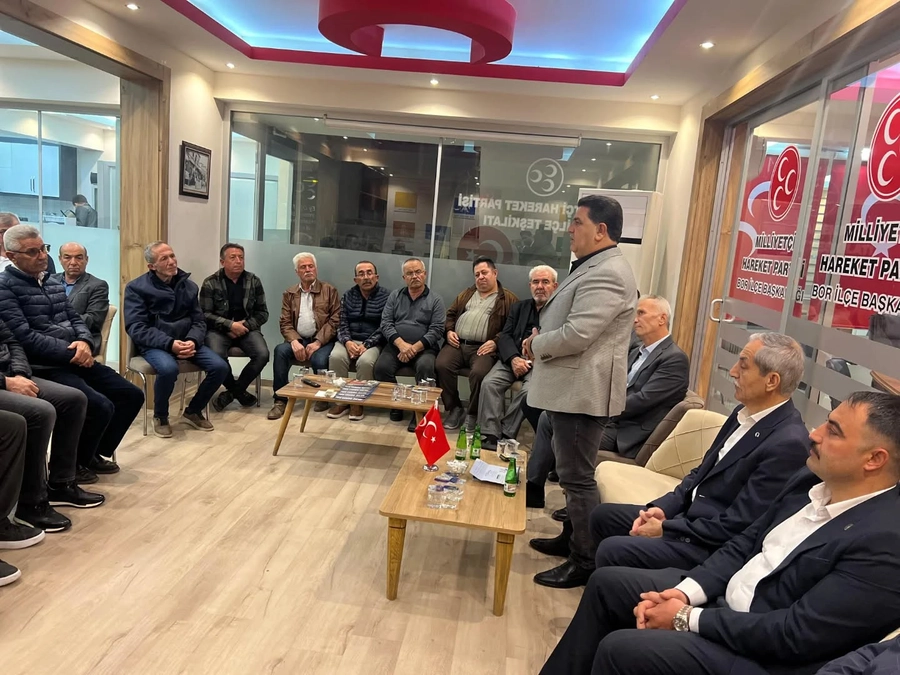 Milliyetçi Hareket Partisi (MHP) Niğde Milletvekili Cumali İnce, “Hayırlı Günler Komşum” projesi kapsamında yürütülen “Derdin Derdimiz” temalı çalışmalar çerçevesinde Bor İlçe Teşkilatı’nda düzenlenen haftalık teşkilat buluşmasına katıldı.