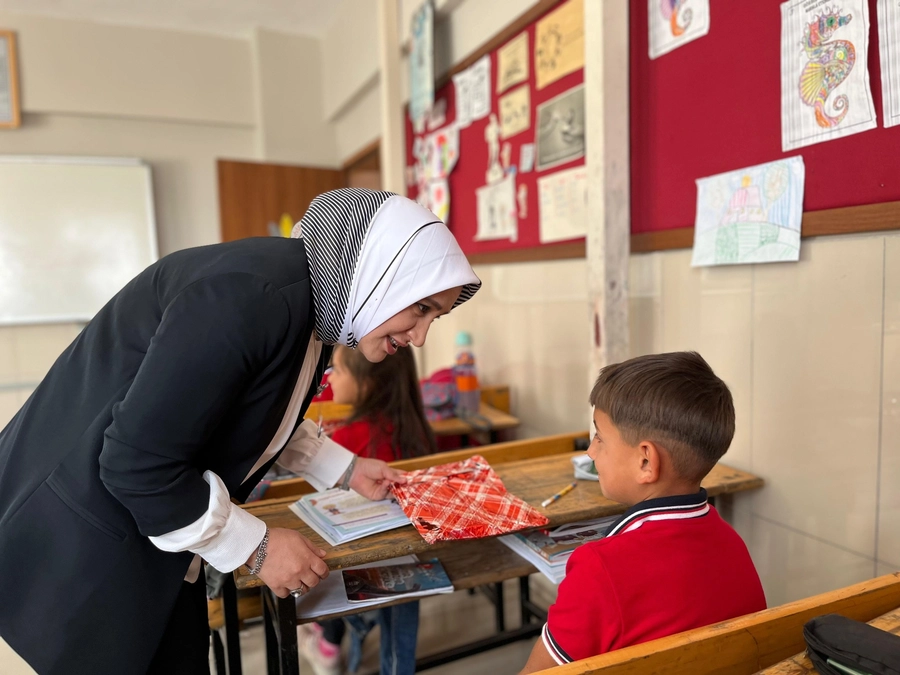 Birleştirilmiş sınıfta öğrenim gören öğrencilerin derslerine misafir olan İl Müdürü Özbek, yeni eğitim-öğretim yılı dolayısıyla öğrencilere çeşitli hediyeler takdim etti. Öğrencilerle yakından ilgilenen Özbek, onların heyecanına ortak oldu.