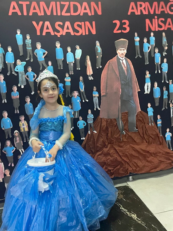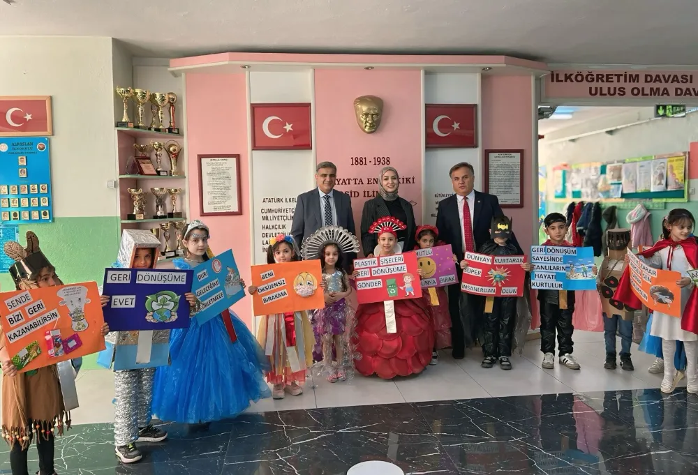 Bayram kutlamalarının en ilgi çekici bölümünü ise öğrencilerin kendi tasarladıkları sıra dışı kostümler oluşturdu. Minik öğrenciler, bu anlamlı gün için adeta birer moda tasarımcısı gibi çalıştı. Çöp torbalarından karton kutulara kadar çeşitli atık materyalleri kullanarak hayal güçlerini konuşturan çocuklar, ortaya birbirinden özgün tasarımlar çıkardı.