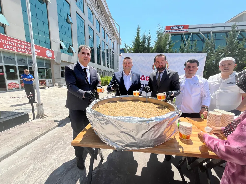 Muharrem Ayı vesilesiyle Niğde Barosu tarafından Niğde Adliyesi girişinde aşure dağıtımı yapıldı. Düzenlenen etkinlikte Niğde Cumhuriyet Başsavcısı Ufuk Mustafa Süren, Niğde Baro Başkanı Emin Alper Öztürk ve İdare Mahkemesi Başkanı Nuri Alper Aydın tarafından, adliye çalışanları ve adliyeye gelen vatandaşlara aşure ikram edildi.