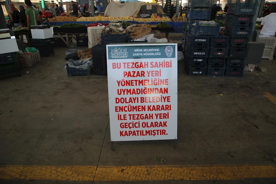 2025 yılında yürürlüğe giren yeni Pazar Yeri Yönetmeliği kapsamında, kurallara uymayan bir esnafın tezgahı Salı Pazarı'nda geçici olarak kapatıldı.