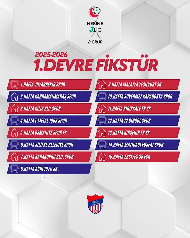 Niğde Belediyespor’un 2025-2026 sezonu ilk devre maçları şu şekilde: