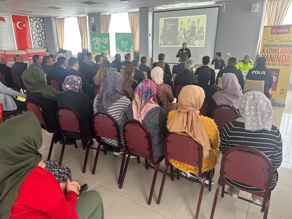 Ayrıca Çiftlik ilçesinde bulunan Öğretmenevi brifing salonunda, "En İyi Narkotik Polisi Anne" projesi çerçevesinde bir etkinlik düzenlendi. Programda temel güvenlik kuralları, KADES uygulaması, iletişim yoluyla dolandırıcılık, siber zorbalık, 112 Acil Yardım Hattı ve önemli telefon numaralarının kullanımı gibi başlıklarda bilgilendirme yapılarak broşür dağıtımı gerçekleştirildi.