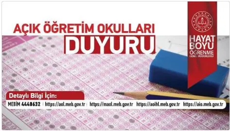 Açık Öğretim Ortaokulu öğrencileri için yeni kayıtlar, 08 Ocak 2026’dan 02 Şubat 2026 tarihine kadar mesai saatleri içinde yapılabilecek.