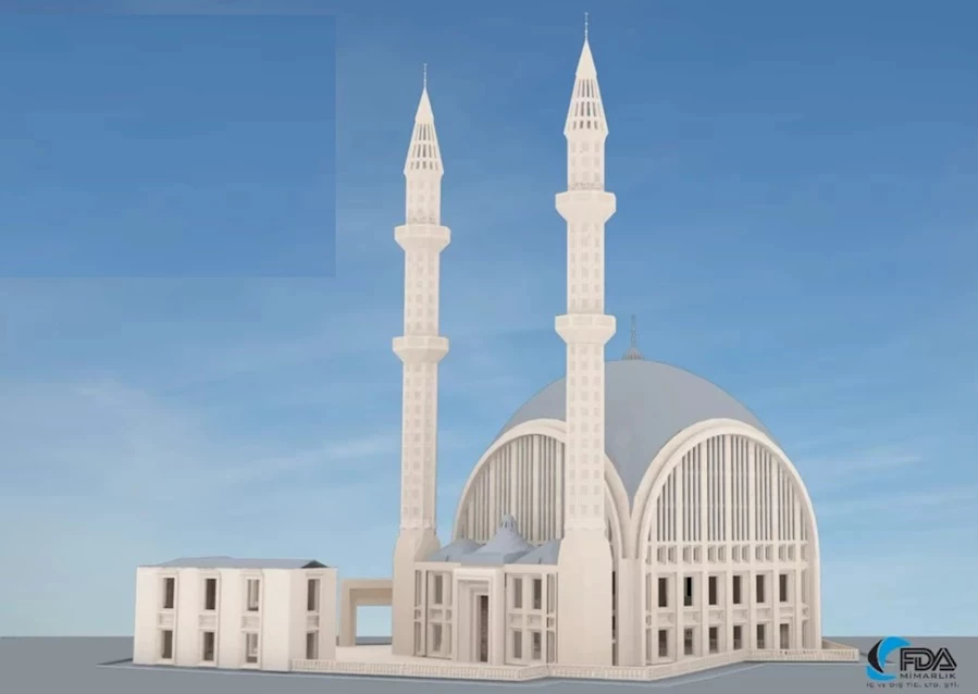 İbadet alanı olarak bin metrekare harim ve son cemaat alanı, 350 metrekare kadın-erkek mahfili ile toplam bin 350 metrekare ibadet alanı ve 2 bin 300 kişilik cemaat kapasitesi sunacak.
