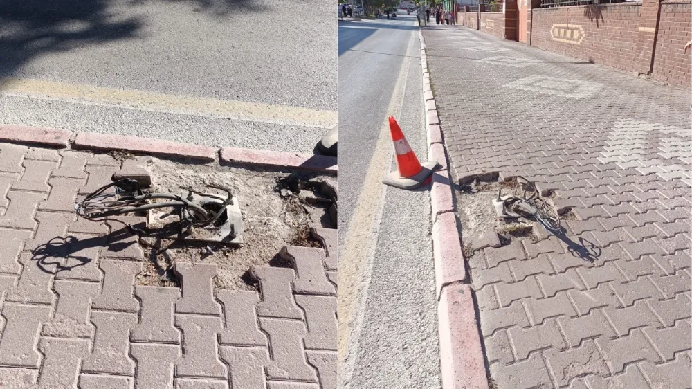 Cesurses.com ihbar hattına gelen fotoğraflarda, İnönü Mahallesi Feridun Zeren Caddesi’nde bulunan bir aydınlatma direğinin söküldüğü ve elektrik kanallarının açıkta bırakıldığı görüldü.