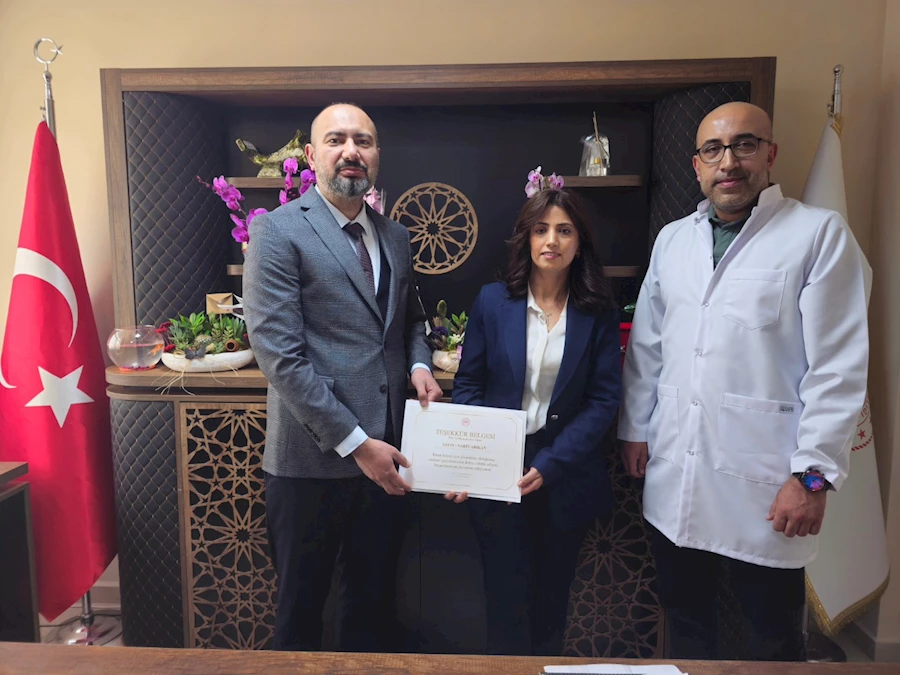 Bu anlamlı günde, hastanemizde görev yapan Ebe Narin Arıkan ve Hemşire Özlem Çelenkoğlu da üstün gayretleri nedeniyle takdir edildi. Başhekim Doç. Dr. Kürşad Ramazan Zor, kendilerini tebrik ederek başarılarının devamını diledi.
