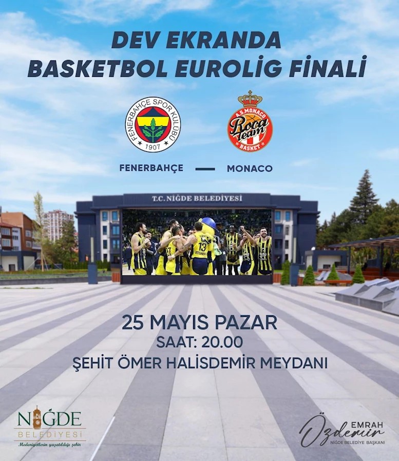 Niğde Belediyesi, basketbol tutkunlarını EuroLeague Final heyecanını hep birlikte yaşamaya davet ediyor.