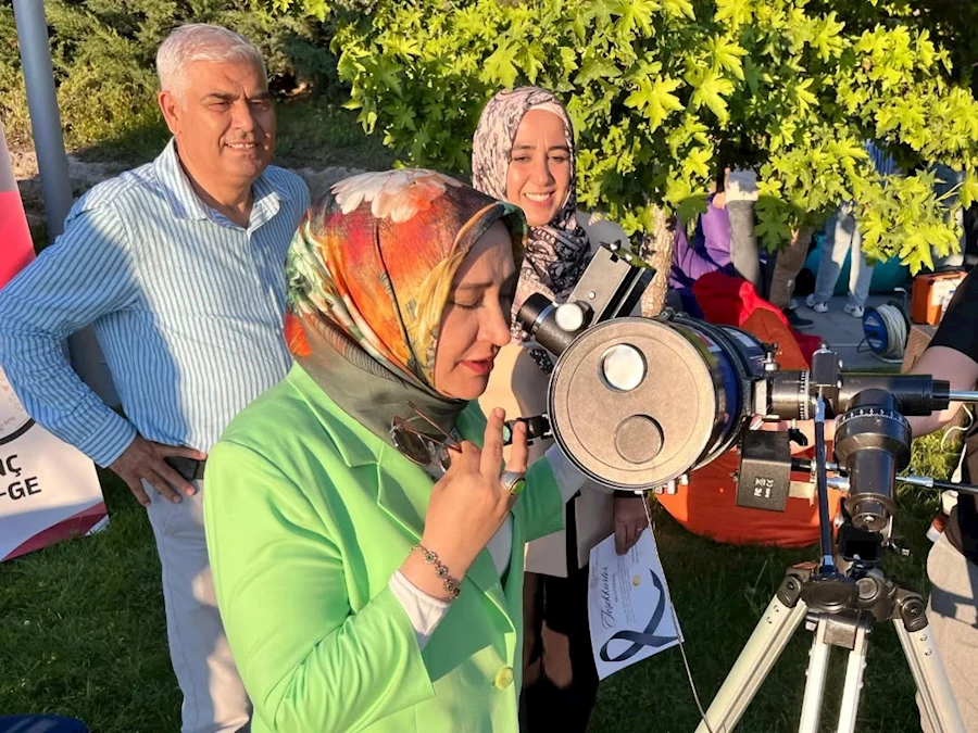 Öğrenciler, teleskoplarla gezegenleri gözlemlerken, taşınabilir planetaryum çadırında evrenin derinliklerine dair interaktif bir sunumla bilgilendirildi. Uzay ve astronomi meraklısı gençler, bilimle iç içe geçen bu özel günde hem öğrendi hem de eğlendi.