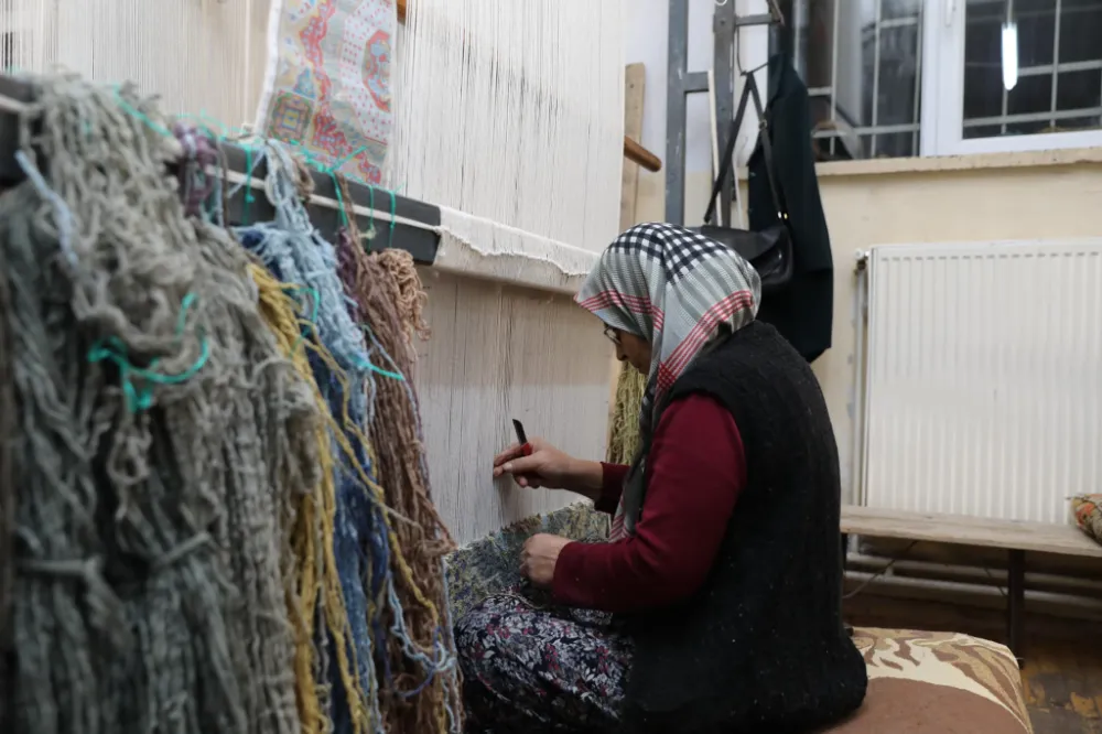 Kursa katılan kursiyerler ise tezgâh başında ortaya koydukları el emeği ürünlerle hem üretime dahil oluyor hem de geleneksel halı dokuma sanatının yaşatılmasına katkı sağlıyor.