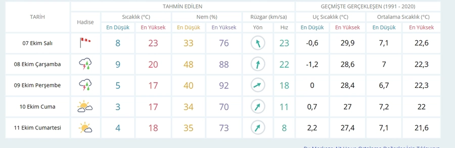 Meteoroloji 7. Bölge Müdürlüğü, Niğde ve ilçeleri için 7–11 Ekim tarihlerini kapsayan yeni hava tahmin raporunu yayımladı. Tahminlere göre kentte hafta ortasından itibaren yağışlı hava yeniden etkili olacak.