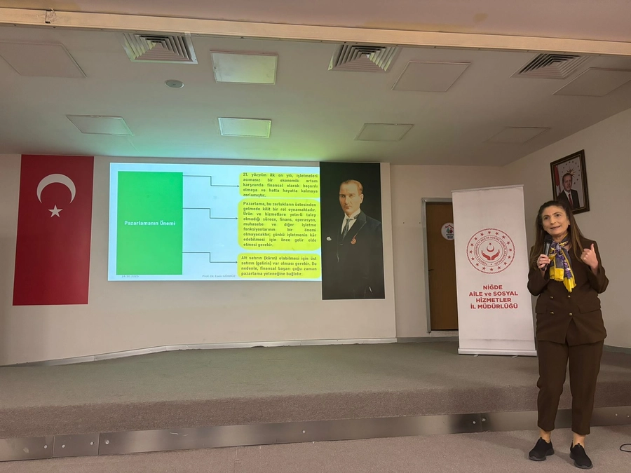 Eğitim kapsamında, Niğde Ömer Halisdemir Üniversitesi’nden Prof. Dr. Esen Gürbüz “Pazarlama ve Ürün Yönetimi” konulu sunum yaparken, Arş. Gör. Naciye Kutlu ise “Muhasebe ve Vergi Mevzuatı” başlıklı bir eğitim verdi.