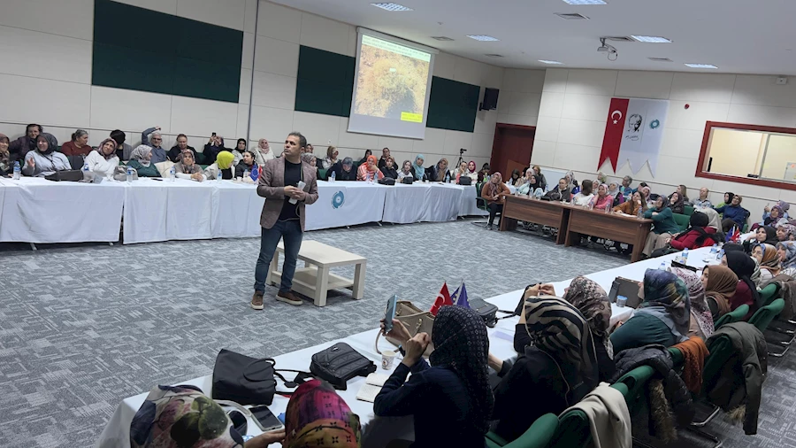 Dr. Serkan Sayın ve Prof. Dr. Ece Ümmü Deveci’nin konuşmacı olarak katıldığı eğitimle ilgili bilgi veren Proje Yürütücüsü Deveci; "Kadınlara iklim değişikliğinde farkındalık oluşturma, ekonomik fırsat yakalayabilmeleri, kompost, solucan gübresi, mantar yetiştiriciliği, tıbbi aromatik bitki yetiştiriciliği ve bunlarla ilgili kooperatif kuracaksa sürdürülebilir olarak neler yapabilecekleri konusunda proje kapsamında eğitimler veriyoruz. Doğaya saygılı üretim modellerini, susuz tarımın önemini ve kadın emeğinin bu dönüşümdeki kilit rolünü anlatıyoruz. Toprağın bereketiyle kadının gücü birleştiğinde, iklim krizine karşı yeşeren umutların ne kadar güçlü olduğunu gördük" ifadelerine yer verdi.