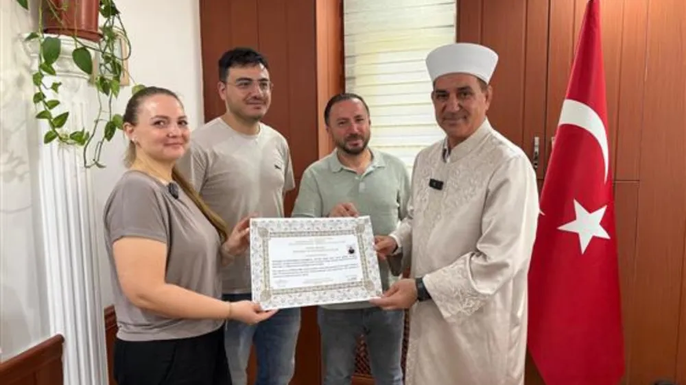 Merasimin sonunda Müftü Hüseyin Gün, Alyona KILIÇ’a ihtida belgesi takdim etti. Ayrıca kendisine bir Kur’an-ı Kerim ve ilmihal hediye edilerek hayırlı temennilerde bulunuldu.