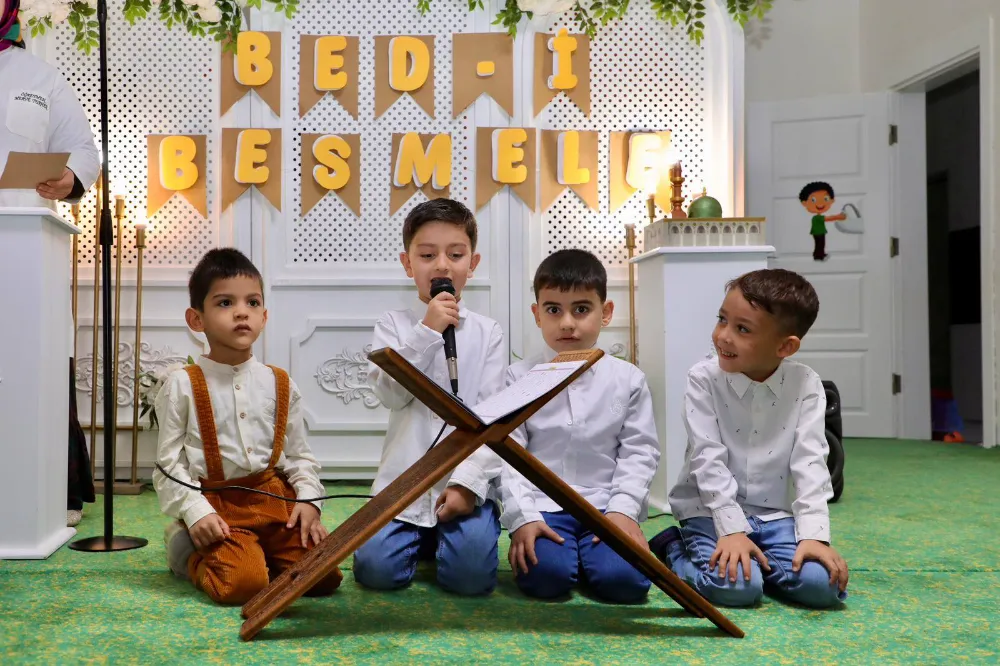Etkinlikte minik öğrenciler, Kur’an-ı Kerim okumaya başlamanın heyecanını yaşarken; söyledikleri ilahiler, şiirler ve yaptıkları dualarla renkli görüntüler oluşturdu.