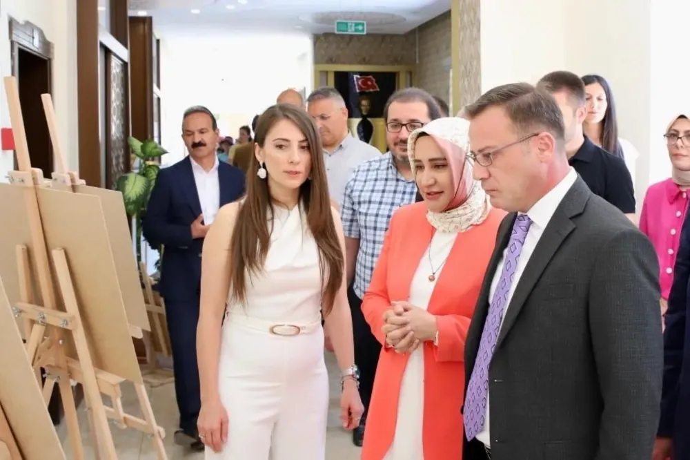 Öğrencilerin karışık tekniklerle hazırladığı eserlerin yer aldığı serginin açılışına Niğde Vali Yardımcısı Resul Özdemir ile İl Müdürü Elif Özbek katıldı.