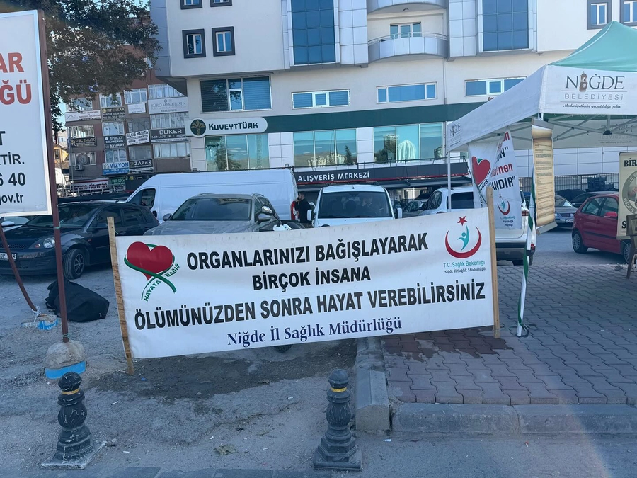 Niğde İl Sağlık Müdürlüğü tarafından Grand Otel yanında kurulan stantta, vatandaşlara organ bağışının önemi hakkında bilgilendirmeler yapılıyor ve dileyen vatandaşların organ bağışında bulunması sağlanıyor.