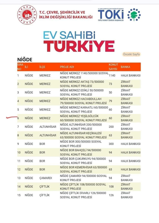 Niğde’de yapılacak konutların ilçe ve beldelere göre dağılımı ise şöyle: