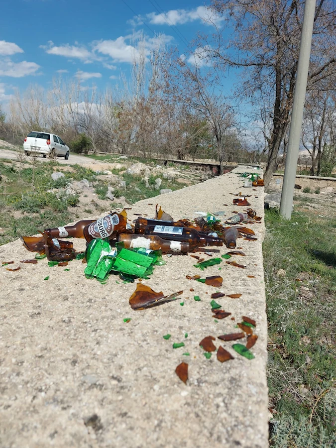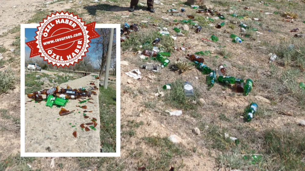 Sulama havuzu çevresinde alkol alan bazı şahıslar, içki şişelerini doğaya fütursuzca atarak hem çevre kirliliğine neden oldu hem de yangın riski oluşturdu.