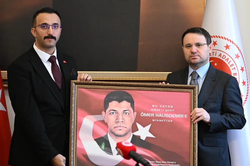 Gerçekleştirilen ziyarette, 15 Temmuz darbe girişimi sırasında gösterdiği kahramanlıkla hafızalara kazınan Ömer Halisdemir’in hatırasını yaşatmak amacıyla hazırlanan özel tablo Bakan Gürlek’e sunuldu. Anlam yüklü eser, Federasyon Başkanı Ömer Yavuz tarafından takdim edildi.