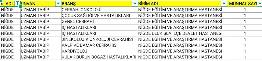 Niğde Eğitim ve Araştırma Hastanesi'ne atanacak uzmanlar: