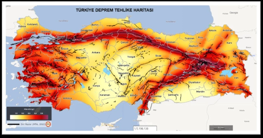 Afet ve Acil Durum Yönetimi Başkanlığı'nın (AFAD) 7 Mayıs 2025 tarihinde yayınladığı ve diri fayların tek tek gösterildiği Türkiye’nin güncellenmiş Deprem Tehlike Haritası