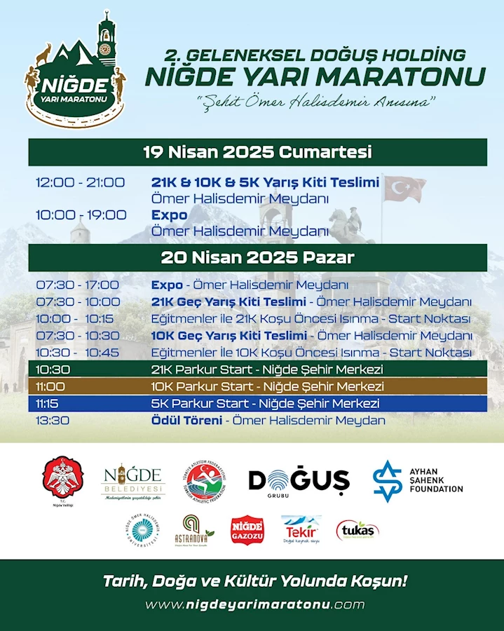 Saat 13.30’da Ömer Halisdemir Meydanı’nda ödül töreni düzenlenecek. Yarış kitlerinin dağıtımı ve EXPO etkinlikleri 19-20 Nisan tarihlerinde Ömer Halisdemir Meydanı’nda yapılacak. Kit teslim saatleri; 19 Nisan Cumartesi günü 12.00 - 21.00, 20 Nisan Pazar günü ise 07.30 - 10.00 saatleri arasında gerçekleştirilecek. Ayrıca profesyonel eğitmenler eşliğinde yarış öncesi ısınma etkinlikleri düzenlenecek. Toplam 592 sporcunun kayıt yaptırdığı etkinliğe dünyanın dört bir yanından katılım olacak. Türkiye’nin yanı sıra birçok farklı ülkeden sporcular, Niğde’de buluşarak hem kıyasıya rekabet edecek hem de bu anlamlı organizasyona destek verecek.