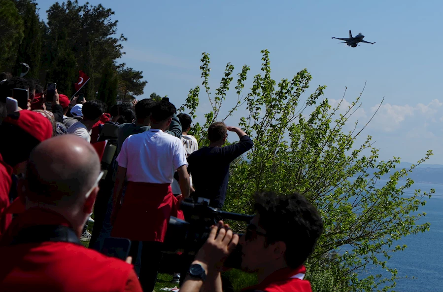 Çanakkale Kara Savaşları'nın 110'uncu yıl dönümünde Şehitler Abidesi'nde 57. Alay Vefa Yürüyüşü'nün kapanış programı gerçekleştirildi. Törene Gençlik ve Spor Bakan Yardımcısı Avukat Doç. Dr. Safa Koçoğlu ve binlerce öğrenci katıldı. Tören ardından öğrencilere ve Şehitler Abidesi ziyaretçilerine SOLOTÜRK gösteri uçuşu gerçekleştirdi. Vatandaşlar gösteriyi ilgi ve heyecanla izledi.