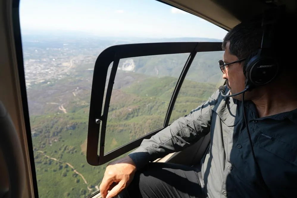 Hatay Valisi Mustafa Masatlı, orman yangınından etkilenen alanlarda, hem müdahale çalışmalarının etkinliği, hem muhtemel riskleri, hem de yangının ortaya çıkardığı tabloyu yerinde değerlendirmek için havadan incelemelerde bulunarak yetkililerden detaylı bilgi aldı.