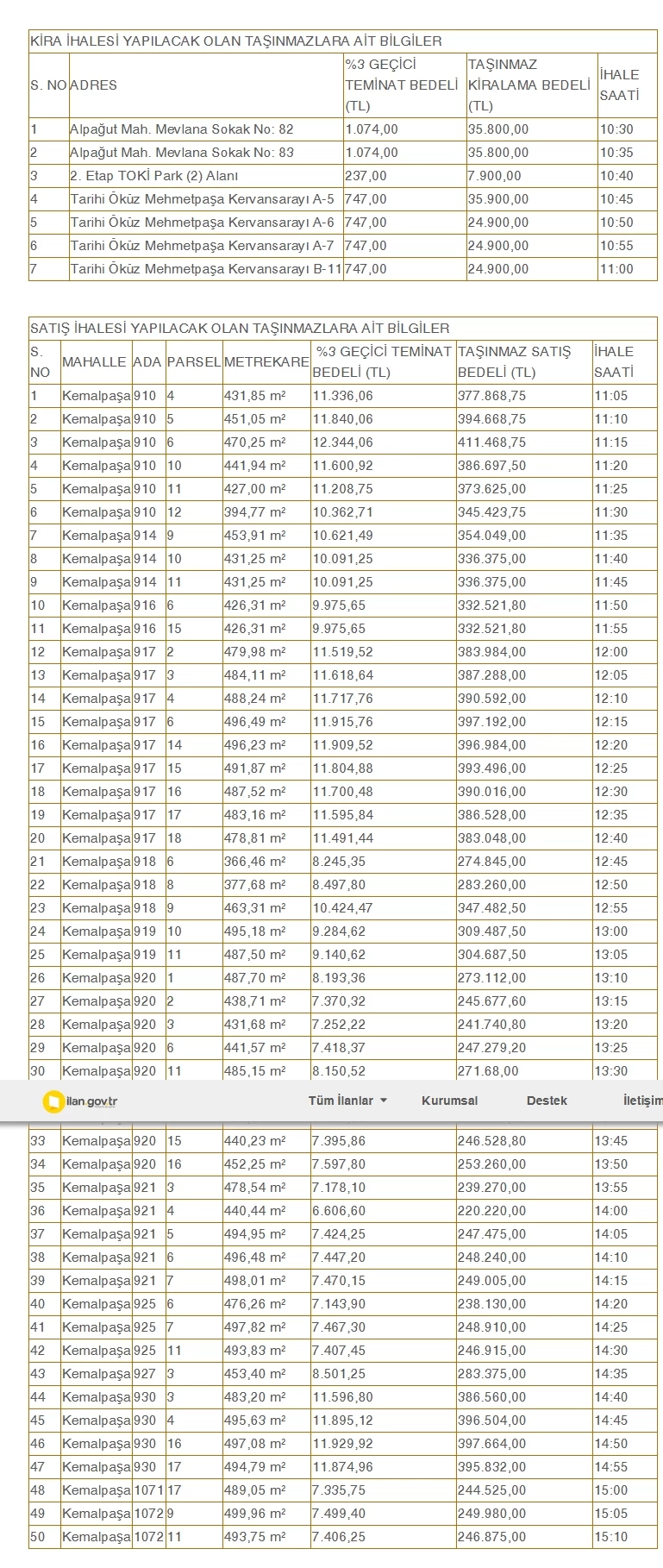 İŞTE KİRAYA VERİLECEK TAŞINMAZLAR İLE SATIŞI YAPILACAK ARSALARIN LİSTESİ