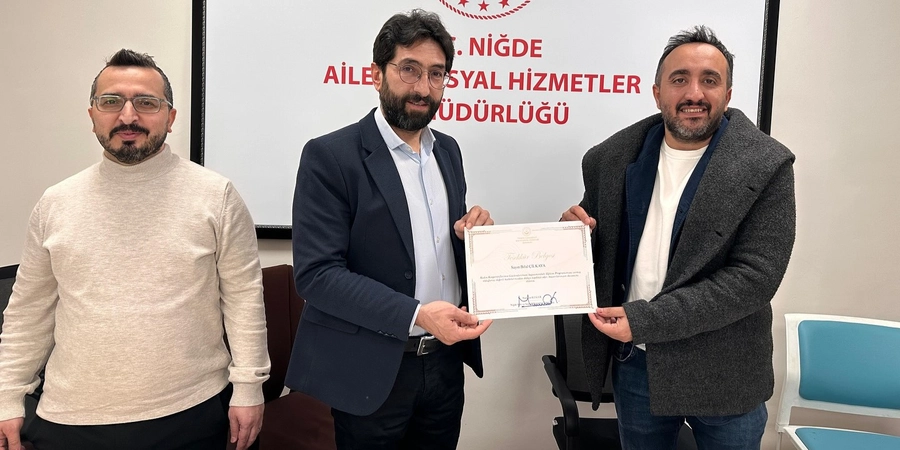 Ziyaret sonunda, kadın kooperatiflerine yönelik eğitim çalışmalarına sunduğu değerli katkılar dolayısıyla Dr. Öğr. Üyesi Bilal Çilkaya’ya, Niğde Aile ve Sosyal Hizmetler İl Müdür Yardımcısı Selçuk Hüseyin Demirtaş tarafından Teşekkür Belgesi takdim edildi.