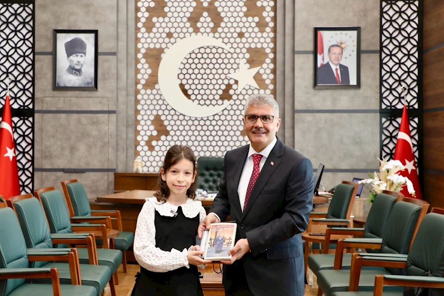 Niğde Valisi Cahit Çelik, minik valiye, Niğde’nin yetiştirdiği önemli şahsiyetlerden biri olan Hazım Tepeyran’ın “Küçük Paşa” adlı eserini hediye etti.