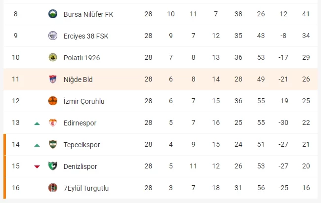 Niğde Belediyespor, 26 puanla 11. sırada yer alırken, rakibimiz 7 Eylül Turgutluspor ise 16 puanla ligin son sırasında yer alıyor. Niğde Belediyespor son karşılaşmasını ise 26 Nisan 2025 Cumartesi günü Denizlispor ile karşılaşacak.