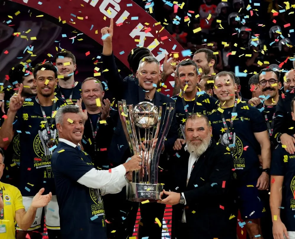 Beşiktaşlı oyuncuların madalyalarını almasının ardından şampiyon takım platforma geldi. Fenerbahçeli sporculara madalyalar Türkiye Basketbol Federasyonu yöneticileri tarafından verilirken, Gençlik ve Spor Bakanı Osman Aşkın Bak ve Türkiye Basketbol Federasyonu Başkanı Hidayet Türkoğlu, kupayı sarı-lacivertlilerin kaptanı Melih Mahmutoğlu'na takdim etti. Melih, kulübün yeni başkanı Sadettin Saran ve eski yönetici Sertaç Komsuoğlu'nu yanına çağırarak kupayı havaya kaldırdılar.