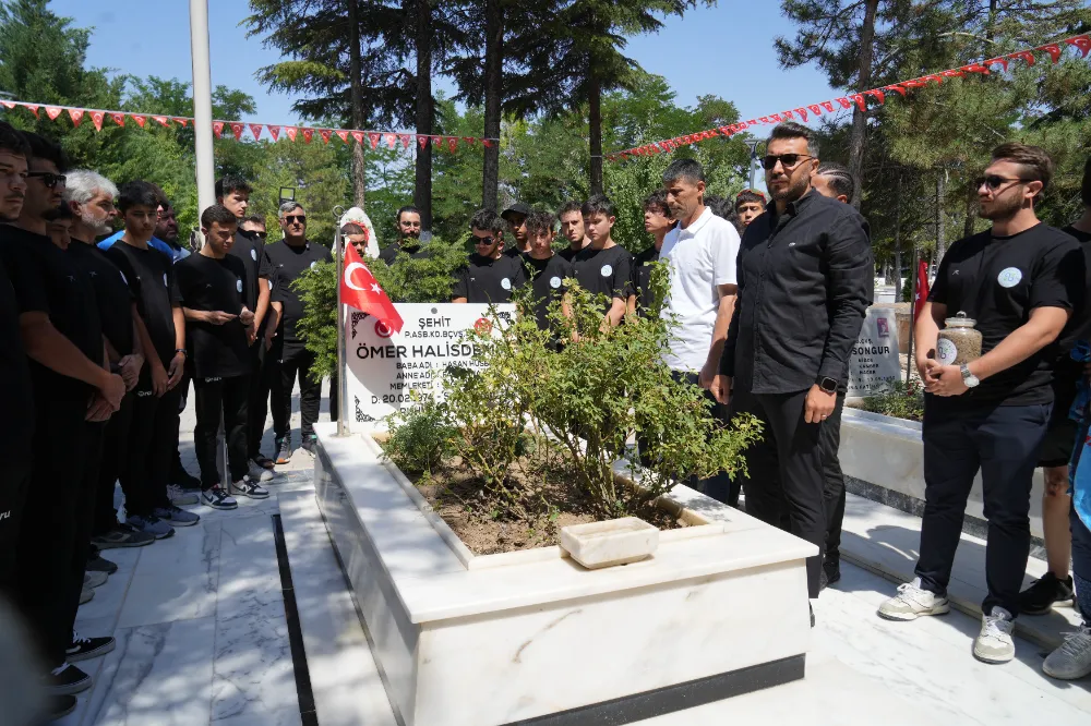 Günler süren yolculuğun ardından Şehit Ömer Halisdemir’in kabri başına ulaşan sporcular yolculukları boyunca çeşitli illerde ziyaret ettikleri şehitliklerden aldıkları toprağı Halisdemir’in kabrine döktüler.